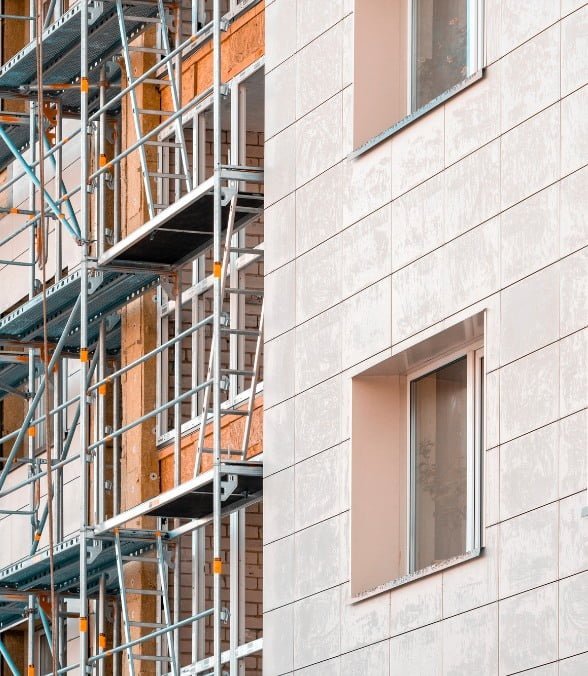 • We erect scaffolding when necessary (or use mobile working platforms) to ensure safe access to all areas of the external walls.